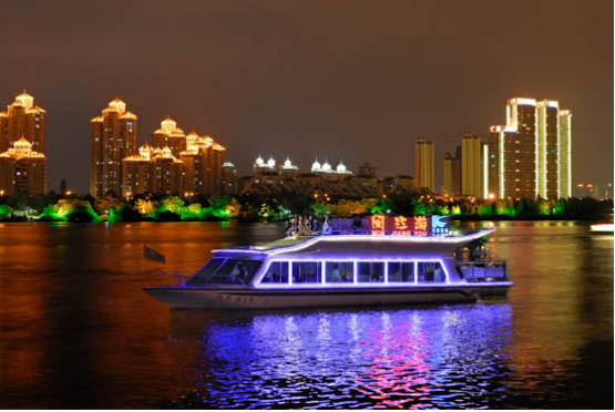 闽江夜游路线:台江旅游码头→金外滩→闽江大桥→中洲岛→南北闽江公园→洪山桥→台江旅游码头。