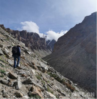 9月初,我约了达瓦进山,去寻找“帮加”。达瓦的父亲其美老人和多位70多岁的当地群众都向我提起了这种植物。在西藏民主改革前,他们就是以“帮加”代替茶叶的。并不是因为“帮加”做出的“茶”好喝,而是因为当时穷苦的百姓根本喝不到真正的茶叶。一路上,达瓦谈论着村子和生活的巨大变化。在海拔5000多米的那木纳尼山体上,他从容镇定,仿佛穿行于熟悉的乡间小路,可下面却是陡峭的万丈深渊。透过达瓦的身影,我仿佛看到了普兰人民以前的艰辛岁月,也看到了现在美好的生活。